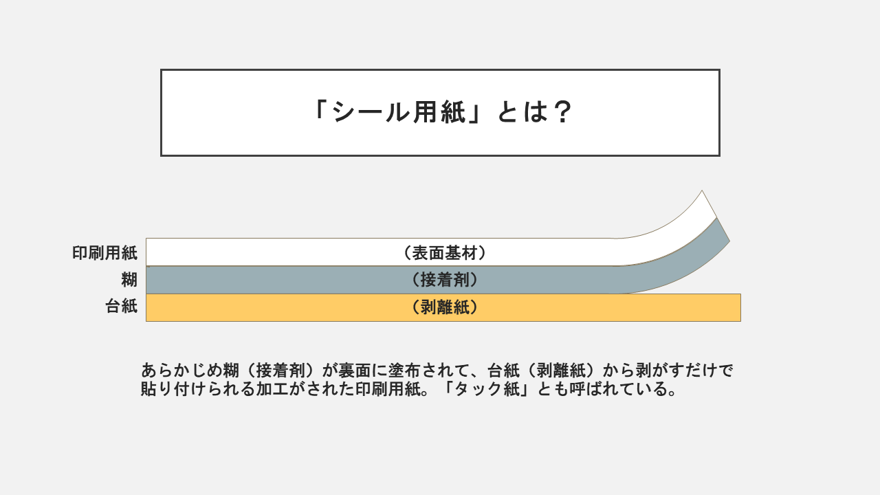 「シール用紙」とは、いわば「タック紙」とも呼ばれる