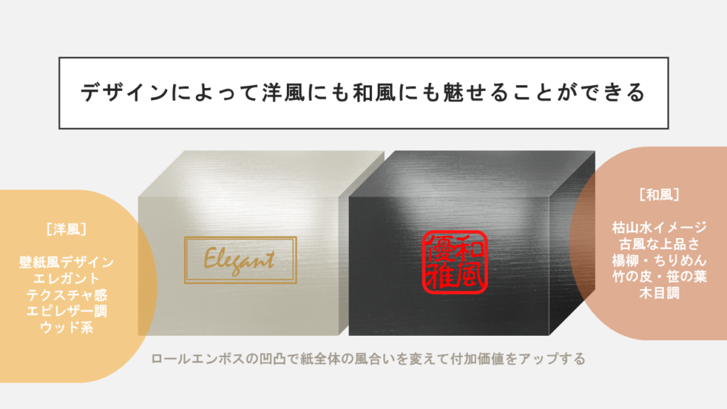 凹凸で紙全体の風合いを変えることで、