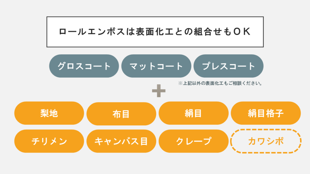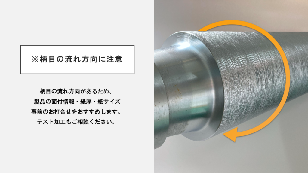 ただし、「クレープエンボス」は柄目の流れ方向があるロールエンボスのため、